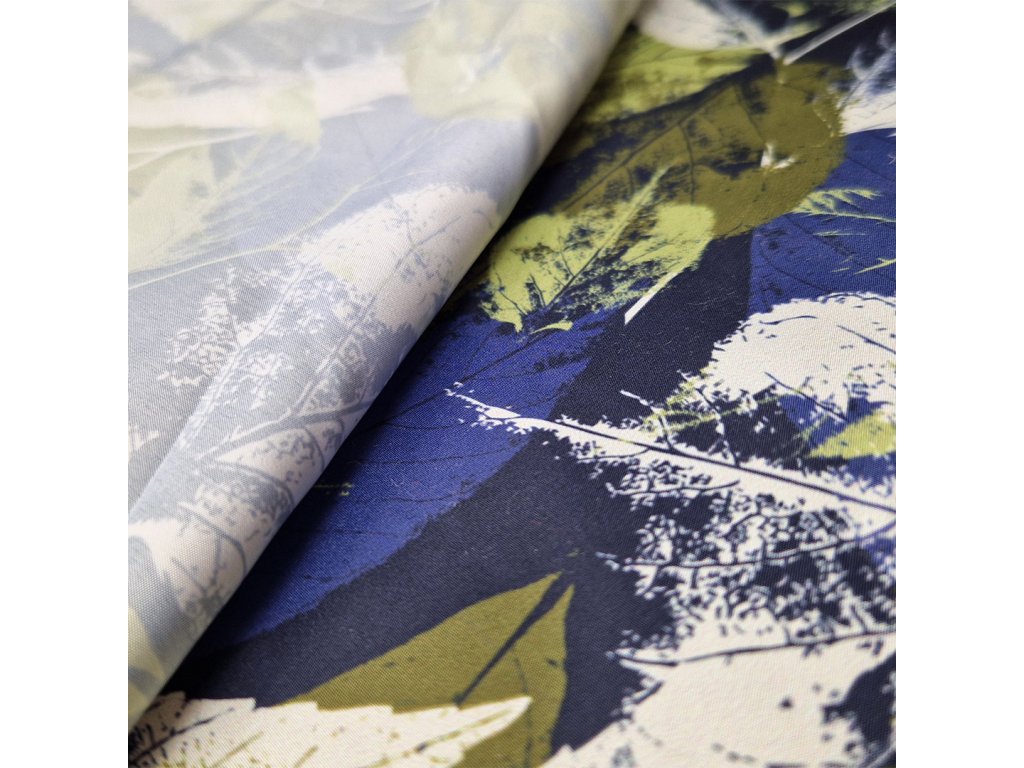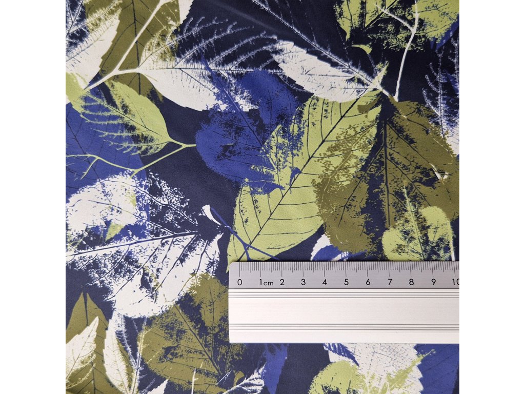 Látka šusťák - šíře 150 cm - bílá, zelené listy