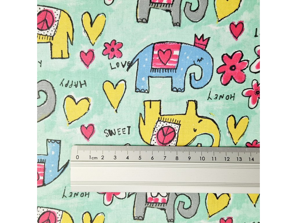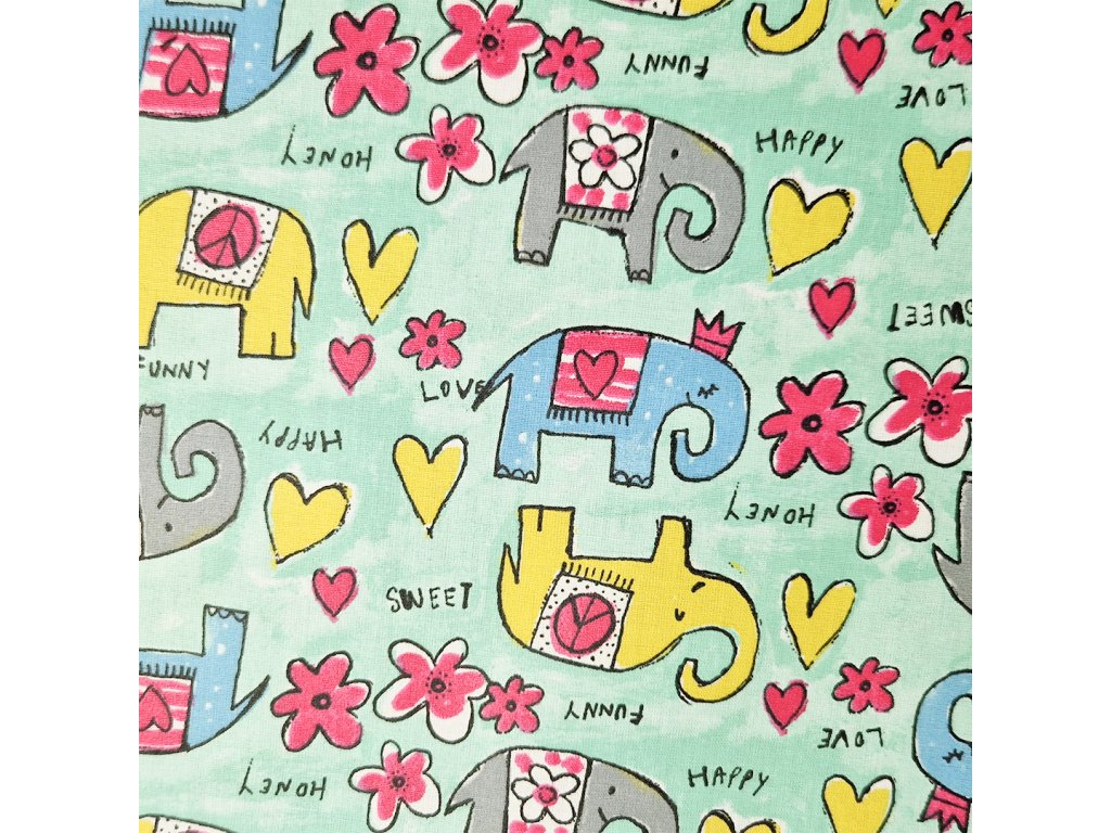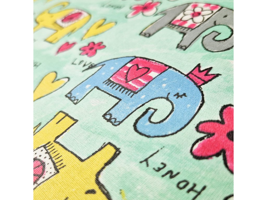 Plášťové bavlněné plátno - 100% bavlna s PU zátěrem - šíře 132 - 135 cm - sv. zelená, barevní sloni